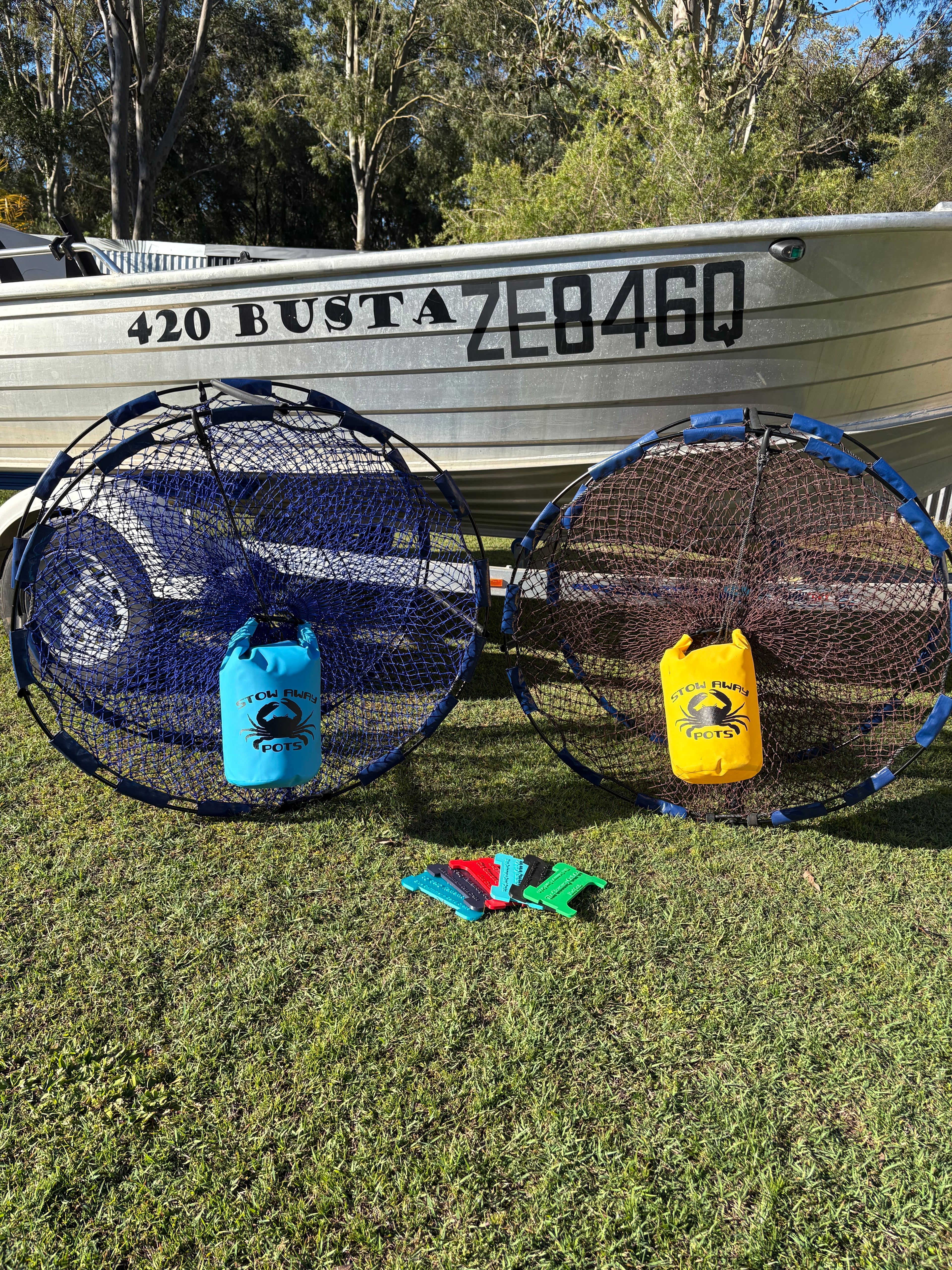Each kit comes ready to drop with a dry bag that doubles as your float, 10m of rope, and a custom crab measure. You’ve got everything you need for a day on the water — except the bait.